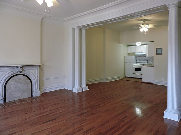 A beauty! Restored one bedroom. Up the stoop plus 2 flights. Large open living and dining room separated by columns. A large bay window and an antique white marble fireplace mantle add to the charm of living in this Brooklyn Heights historic townhouse. Renovated kitchen with dishwasher. Renovated bathroom. Excellent closet and storage space. No pets or smoking please. August occupancy.
