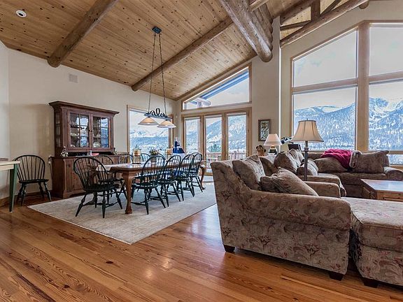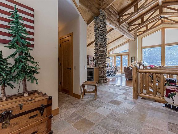 This beautiful architectural design sits on a bluff with an insane view to the Sherwin Bowl and Mammoth Rock. The game room looks right up at the ski area so you can watch the gondola run. Home has hydronic radiant heat in the floors, Bishop Creek rock fireplace, reclaimed pine floor separate living area downstairs for kids, a billiard room and den, central vac, a bar, ski locker, fishing locker and an oversize 771 sq ft garage. Located in one of Mammoth's premier subdivisions at Snowcreek Crest. Sunny south facing back yard with jacuzzi, rock patio fenced area and landscaping. Designed by Elliott Brainard. Close to Starwood golf course and shuttle to the Mammoth Mountain ski area.
