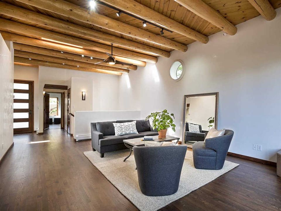 Beautifully remodeled end unit on two levels in the sought after, and rarely available, 7-unit compound next to Casa Solana. This elegant home has just been recently updated to meet the needs of today's discerning buyer. Venetian plaster, refinished hardwood floors, stainless appliances, quartz countertops, new cabinets and tile are just a few of the high end designer finishes this home includes. Combined with a location just minutes from the Santa Fe Plaza, this property should not be missed. Seller may be willing to lease back for 6 months.