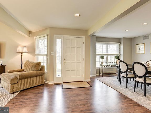 Welcome to Greene Tree Gated Community. This Contemporary Townhouse is a Carlyle model end unit with the perfect private corner lot. It has 3-4 bedrooms with 2.5 baths and a finished lower level. The owners have updated the home by first creating an open floor-plan which includes a 2-story Living Room. The wide plank hardwood floors go perfectly with the neutral color paint throughout. The natural light beams through the large windows in all of the rooms giving the home a light and airy feeling. Crown molding & recessed lighting provides special accents to each room. The eat-in kitchen includes Quartz on the counter-tops, stainless steel appliances, beautiful tile back-splash and lots of counter space. The kitchen opens to the family room to provide a comfortable entertaining atmosphere in front of the fireplace. The bedrooms are on the upper level which includes updated bathrooms while the spacious recreation room is on the lower level. You can literally move right in, relax and enjoy not having to update or fix a thing! Enjoy the new pool, tennis courts and the great location - minutes walk to Starbucks, Trader Joes , restaurants, shopping and more...