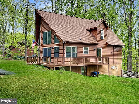 This cedar-built A-frame home is situated in Blue Mountain, offering a three-level living experience. Recently upgraded with new flooring, carpeting, and paint throughout the main and upper levels, this property boasts two luxurious master suites - one on the main floor and the other upstairs with a private bathroom and a walk-in closet. The lower level is a versatile space, providing access to the backyard and featuring an additional room capable of serving as an office or an extra bedroom. The great room on the main level is the star of the show, with two-story ceilings and walls of windows, which allow for natural light to pour in. The home also features a brand-new 16 x 12 shed, three new toilets, and a washing machine installed in 2023. The roof was replaced in 2021, ensuring the home's structural integrity for years to come. Located in the heart of Warren County's wine country, the home is conveniently located near multiple wineries, including Fox Meadow Winery, making it a perfect location for wine enthusiasts. The property is also conveniently located close to the town of Front Royal, with easy access to I66, providing quick access to Northern VA. Xfinity cable and internet are available, making this property an ideal home for working professionals. This beautiful mountain retreat is sure to sell quickly, so don't miss out on this incredible opportunity. Schedule your viewing today!