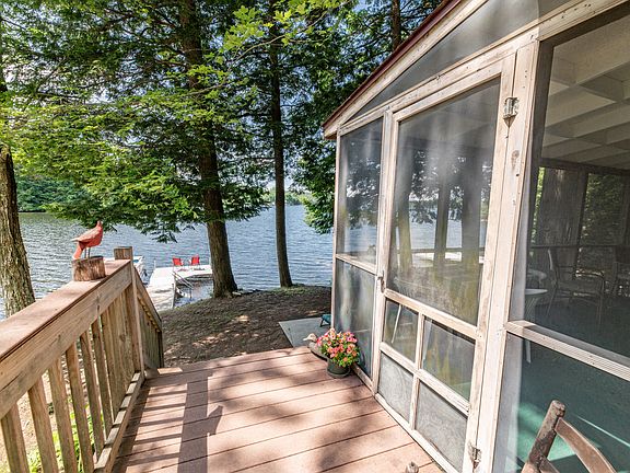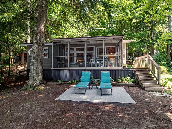 ''Wonderful West-Facing Lakefront Cottage on Desirable Woodbury Pond.'' Welcome to this delightful lakefront cottage, perfectly positioned to capture breathtaking sunsets from the spacious screened porch. Enjoy the late afternoon sun as you grill or relax by the water. This prime waterfront lot features approximately 4 feet of water off the dock, ideal for swimming. Woodbury Pond, the largest of the Tacoma Lakes, is a paradise for fishing, boating, and canoeing/kayaking enthusiasts. For the right offer, the seller is including a pontoon boat and trailer. Additionally, the lot across the street, which was purchased separately, is included in the sale, offering expansion opportunities subject to town/state permitting. Inside, the well-designed floor plan maximizes space with two generously sized bedrooms with closets, a large screened-in porch, and an open kitchen/dining/living area. A cozy reading nook by the wood-burning fireplace offers serene water views. There is high-speed internet access, and the road is maintained year round. This cottage is completely turn-key and ready for you to start making unforgettable Maine lake house memories this summer!