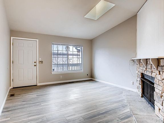 REMODELED TOP FLOOR PENTHOUSE WITH VAULTED CEILINGS, SKYLIGHTS, FIREPLACE AND BALCONY OFF THE LARGE BEDROOM**** VAULTED CEILINGS. ****FULLY UPGRADED NEW KITCHEN WITH CUSTOM BACKSPLASH AND BATHROOM****NEW APPLIANCES, PAINT, CARPET, AND MORE. EXTERIOR IS IN THE PROCESS OF BEING RENOVATED INCLUDING THE FRONT AND REAR DECKING. AWESOME LOCATION. ****NEXT TO THE AURORA TOWN CENTER. VERY CLOSE TO SHOPPING, DINING, AND THE NEW LIGHT RAIL STOP. ***** ****THIS IS AN EXCELLENT OPPORTUNITY FOR A FIRST TIME HOMEOWNER ***THERE IS A $1500 LENDER CREDIT TOWARDS BUYER'S CLOSING COSTS IF LISTING AGENT'S PREFERRED LENDER IS USED FOR FINANCING FOR THIS PROPERTY.