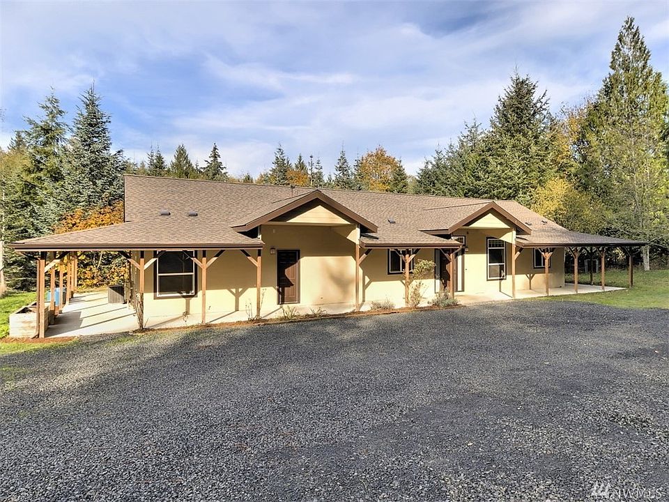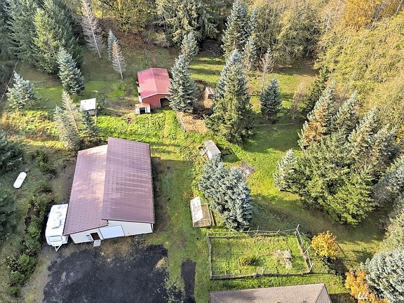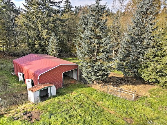 Ideal location, private, and the 5 acre mini-farm you've been waiting for! 36X48 pull-through shop w/Dutch doors & office, 24X36 3-stall barn, 4 pastures, 2 shelters, round pen, chicken coop & greenhouse. Home's incredible 8 ft. wrap-around porch + patio (2000+ SF) is perfect for NW living! New carpet, 3 BR/1960 SF, new roof in 2017, ext. paint 2019, and 9 ft. ceilings thru. Huge kitchen, dining rm w/built-ins, private master suite w/updated bath (new soak tub, tile & fixtures) & adj. den.
