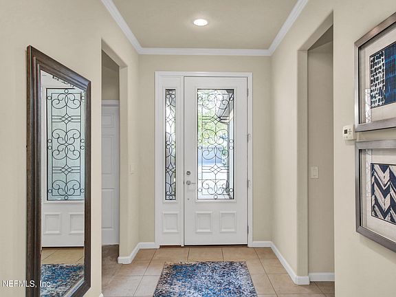 Welcome to this immaculate former model home nestled in the serene 55+ community of Riverwood By Del Webb. Constructed with concrete block, safety and durability are paramount. Boasting 2 spacious bedrooms and 2 baths, this home offers comfort and style. There is also a flex room that could be used as a 3rd bedroom or office. The layout includes a dedicated safe room providing peace of mind if ever needed. Every detail reflects the care of its one owner with model finishes throughout. The garage has been decked out in custom cabinets and epoxy floors providing great storage for the golf cart, bikes and beach gear. Whether you're enjoying the tranquil ambiance as a vacation getaway or settling into the tranquility of retirement living, this home offers the perfect blend of sophistication and comfort. Enjoy all the resort like amenities of the Del Webb Anastasia Club that are within walking distance. This is the perfect location and home to enjoy the NE Florida lifestyle.