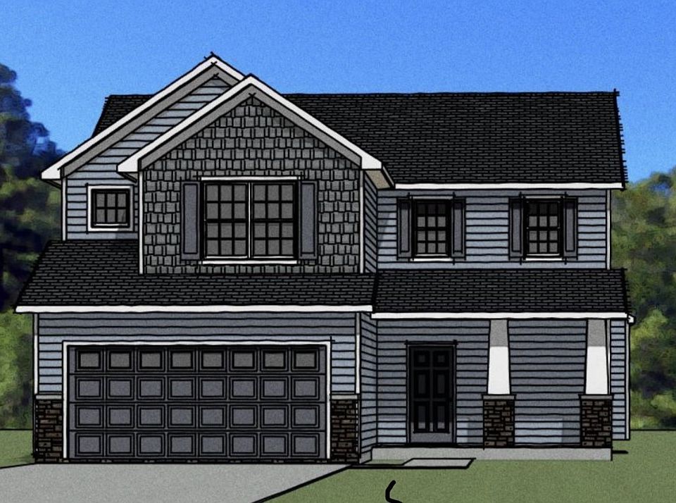 Absolutely stunningly unique floor plan. Coffered ceiling in great room. Large walk in pantry. Enormous master suite. Double vanity with additional Make-up vanity in master bathroom with double tile shower. Large bedrooms with walk-in closets. Laundry room upstairs! Covered deck with a fan! This is a copyrighted floor plan of Hawkins Homes