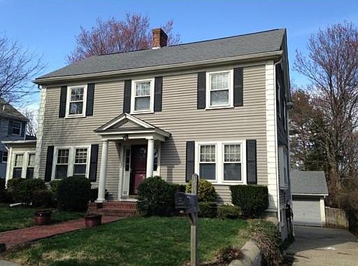 Center entrance Colonial with 4/5 Bedrooms, 2 Baths and a 2 car garage with so much charm. Front to Back Living Room with fireplace, built-ins and French style glass doors to deck; Year Round Sunroom, Dining Room with built in china closet; good size bedrooms, Finished Third Floor walk-up; first floor laundry & basement laundry hookup too; and nice size yard. This home has so much to offer with updates including: (approx. ages) Kitchen 2004Windows 1993; Roof 1 layer 2000; 2 additional finished rooms in basement with full bath; exposed aggregate driveway & more.