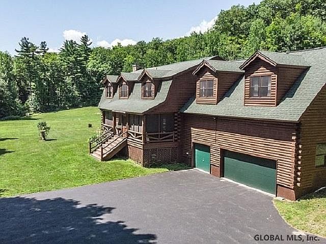 Captivating log home resting peacefully on 47 private acres! Home offers 4-5 bedrooms depending on your needs, and 3 full bath to accomodate a large family or large gatherings. Living area has a stunning Adirondack stone fireplace from floor to ceiling with cathedral ceilings allowing an abundance of natural light. Choice of a master bedroom with master bath, or a master suit area over the garage with a ensuit if you desire the larger more separated area. 3 car plus heated garage, basement with 12 foot ceilings allowing additional living space or game room area, automatic generator, paved driveway, and did I mention the 47 very private acres that borders the conservancy lands. Lake George beach and boat launch are only minutes away! Motivated sellers! Book your showing today!