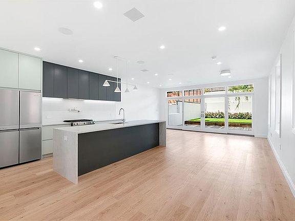 This fully renovated home boasts a modern and luxurious design, starting with nine-foot ceilings that create a spacious feel throughout. The first floor features an open-concept layout, showcasing a high-end kitchen with a custom quartz center island. Elegant light oak plank flooring runs throughout, complemented by a scissored custom staircase with stainless steel cables and oak handrails. French doors lead to a charming front porch, while floor-to-ceiling sliders at the back provide seamless access to a beautifully landscaped yard, perfect for entertaining. Inside, the large master bedroom includes a spa-like en-suite bathroom, and there are three additional generously sized bedrooms along with a stunning guest bathroom. The finished basement adds extra versatility. The home also includes central air and heat for year-round comfort. This property offers modern luxury and thoughtful design in every detail.