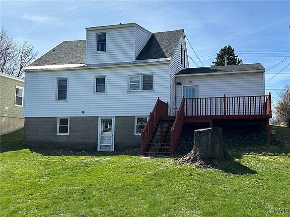 Charming Cape Cod home that has been owned by the same family for over 50 years! Located a stone's throw away from SUNY Oswego & Lake Ontario. This lovely home features hardwood floors throughout. Well lit living room with fireplace. Good sized formal dining room. Updated kitchen has that window over the kitchen sink to observe all the backyard activities! Nicely updated full bath and first floor bedroom round out the downstairs. Upstairs you will find two spacious bedrooms and another full bath. Great sized 60 x 130 lot with storage shed & be sure to check out the raspberry bushes. Nice deck for outdoor entertaining. Attached 1 car garage and partially finished basement.