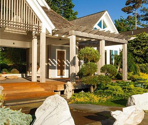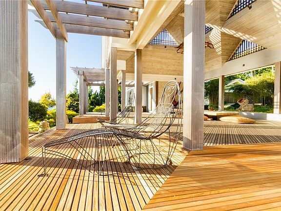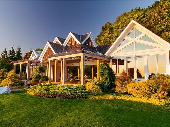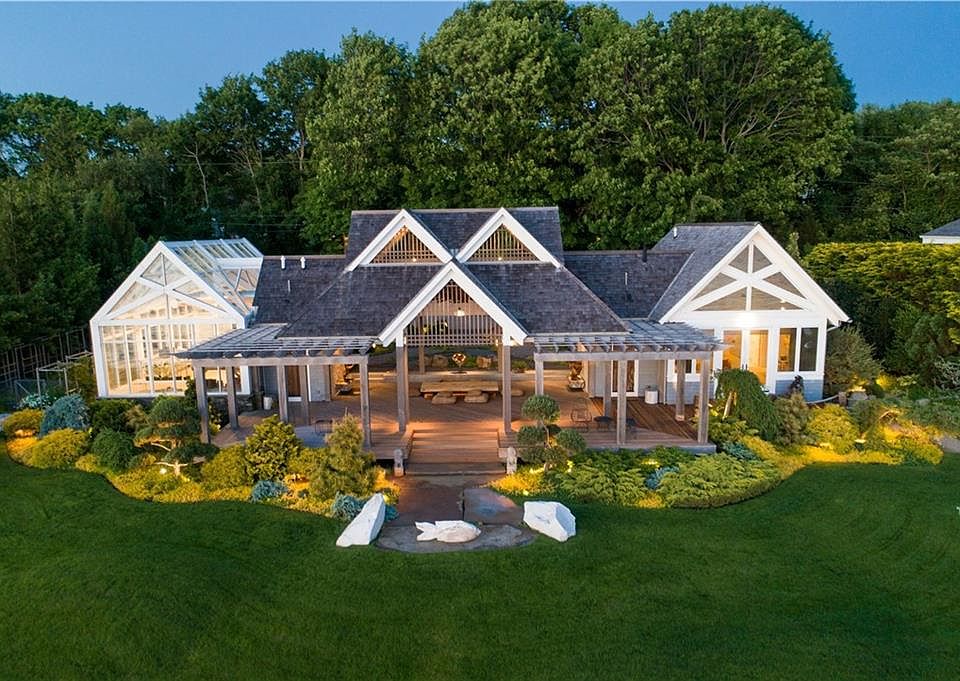 The Tea House is a luxuriously private Asian inspired waterfront residence on .5 acres at the end of a private road in Bristol Highlands. Award winning architect designed home embraces the spectacular west facing views of Narragansett Bay. An expansive covered outdoor space with Japanese Style seating is an ideal place for entertaining or quiet repose. The veranda is an opportunity to showcase the carefully designed Asian inspired plantings and outdoor sculpture. Flanking this large outdoor space is a heated greenhouse and living quarters. The living space accommodates a master bedroom ensuite with a luxurious spa bath, kitchen, and office all with commanding views of the bay. This private retreat offers private access to the shore, and is part of the Bristol Highlands Association offering a dock, mooring field, boat ramp, clay tennis court and the nicest group of people! An added amenity is easy access to the East Bay Bike Path which connects the Town of Bristol to the East Side of Providence. A rare offering.