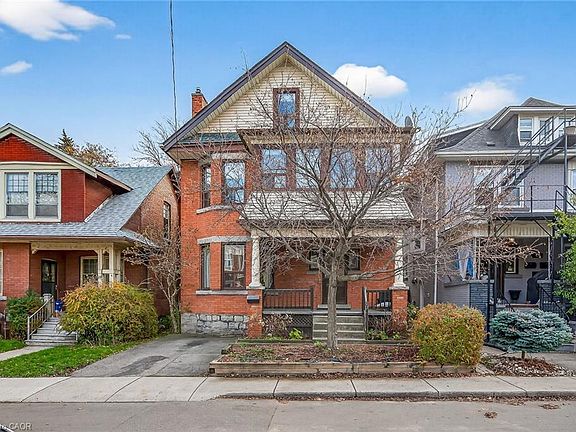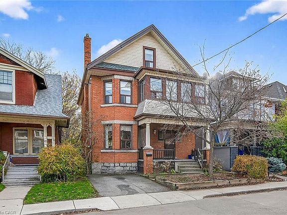 Welcome to this classic 2 1/2 storey century brick home, ideally located in vibrant Stipley neighbourhood. This character filled home presents endless possibilities for first time buyers looking to create a wonderful family home, renovators looking to restore and add modern touches or investors looking to convert. This one has something for everyone. Enjoy quiet time on the covered front porch. Enter the foyer and be greeted by old world charm, original trim and woodwork. The spacious living room with ornate gas fireplace is a great space for friends and family to gather before dining in the formal dining room. Oak kitchen with rear yard access further enhances the main level. The second floor is complete with 4 spacious bedrooms with one of them featuring an adjacent sunroom. Updated 4 piece bath. Retreat to the third floor, a bright open concept area with skylights. A fabulous self contained teen escape or in-law suite with its own kitchen, full bathroom and expansive bedroom/sitting room. Separate side entrance leads to the basement, loaded with potential. Rear yard is fenced in and there is a single car front drive. If you are looking to invest in a neighbourhood that is within walking distance to Gage Park, Tim Horton's Field and local amenities look no more. Buses, shopping, schools and dining conveniently located nearby. This timeless home, with an abundance or original woodwork, doors and trim, offers many versatile options.