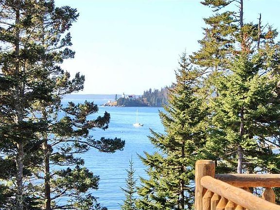 Exceptional quality and setting with this immaculate log home perched high on the shore of Burnt Coat Harbor looking directly across to the lighthouse & open ocean. Cathedral living area flows into open kitchen & dining area. New deep water dock & float. 4 bdrm house with 3 bdrm septic