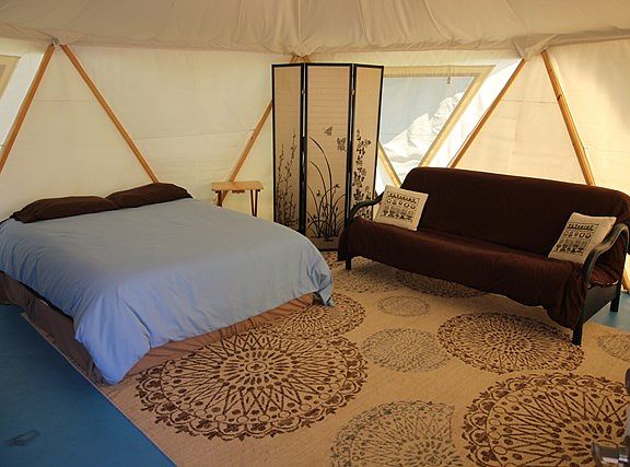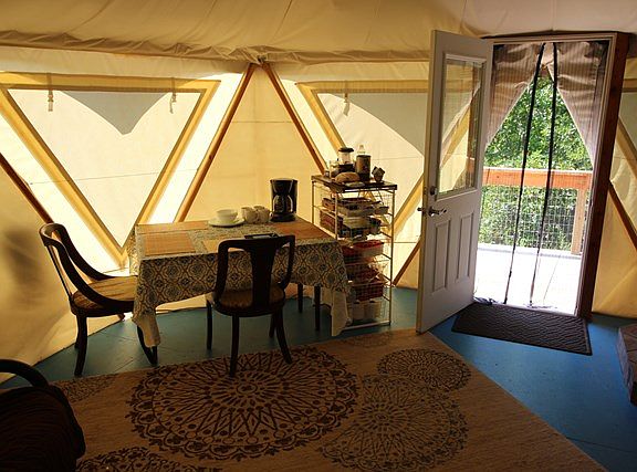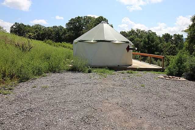 One of the neatest properties I have seen. A yert set up on a platform looking out at the mountain views. At the bottom of the property is Crabtree Creek, a great clear mountain stream. Home is currently used very successfully as a rental, and you can find it on airbnb. Part of the property lays well enough to grow crops & the rest is woodland. Perfect for hiking, fishing & nearby golf. Burnsville and Spruce pine are about 8 miles away & Asheville is about 45 minutes.