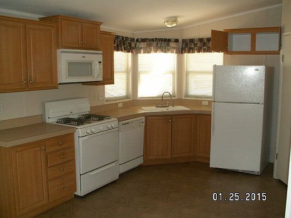 2008 Manufactured home with 2 bedrooms, 1.75 baths & a den that could be used as a 3rd bedroom. Nice neutral color combinations; Kitchen has dishwasher, oven/range & refrigerator with plenty of counter space. Laundry room with cabinets for storage. Lot has storage shed & covered metal car port, but there is room for a garage at a later date. Small covered deck for BBQ & gatherings. Yard is undeveloped, but there is room to put a fence and create an attractive space & garden area. No expensive water here- only $360 per year!