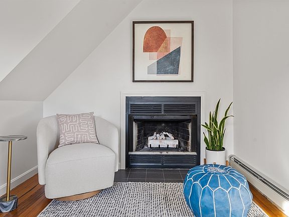 Light moves effortlessly, spilling across two levels, settling in quiet corners, and traveling through the home. Each room is designed to inspire comfort and practical use. The large bedroom is a retreat unto itself: grounded by a fireplaced sitting area and brightened by light from two exposures. A cubbied entryway offers a moment of transition. In the eat-in-kitchen, stainless steel appliances shine under outstretched counters. Ascend to the upper level, where sunlight pours through a southwest-facing glass door and skylight into the living room with a quiet WFH corner and private balcony perched above the city’s busy pace. Practical luxuries abound: 2 non-tandem off-street parking spaces + shared laundry and dedicated storage in basement. This is Spring Hill and Union Square at its finest. Near Bow Market, Green Line under 1/2 mile, celebrated businesses like Ricky’s Flower Market, specialty grocers like Capone Foods, an array of top restaurants. A space to rest, to gather, to grow.