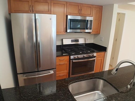 Updated galley-style kitchen with granite or simulated granite counter-tops, custom maple kitchen cabinets, GE stainless steel appliances (refrigerator, gas stove, microwave, dishwasher, garbage disposal), original parquet hardwood floors, downstairs half bath, built-in desk (select units), central A/C, upstairs full bath and in-unit washer/dryer. Heat and hot water included Shuttle service to T Pet Friendly Fitness Center Community room with free wi-fi Business center Computer Cafe Garage parking available Zip Car on-site Fitness Circuit Landscaping Community Sponsored Resident Events