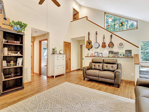 If you have ever dreamed about living in a Tree House, this is as close to it as you can get! This contemporary modern house sits on 3.2 acres of wooded land and has a trail to access your own private creek! The 1st floor has an open concept with 2 bedrooms and 1 full bathroom on the main floor. The primary bedroom has a private retreat on the 2nd floor where you can enjoy views of the woods. There is also a Loft upstairs with a custom built wrap-around desk that makes this room perfect for a home office or a craft room. Need more space? The basement makes an amazing added bonus space that can be a playroom or game room, and storage space. Relax on the expansive deck or go explore the woods on foot, your choice! Great location with quick access to 15-501 and 64, close to Southpoint, RTP and RDU. Low Chatham County Taxes! 212 sq ft of Other Area are included in the total square footage for laundry and loft area. See notes in agent remarks. *Seller is offering a $3000 credit at closing with an acceptable offer!*