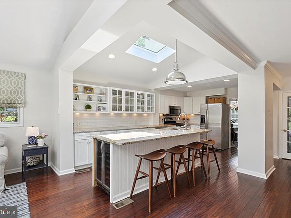 Welcome to 91 Upper Gulph Rd, a beautiful renovated stone colonial in the desirable Shand Tract and Dunn Hill neighborhoods in Wayne. Offering 3 bedrooms 2 bathrooms with 2,352 SqFt of finished living space and gorgeous features throughout! The heart of this home is the renovated kitchen and extended family room with an incredible open floor-plan with an eye-catching exposed beam, vaulted ceilings, multiple skylights, and hardwood floors that span throughout the entire home. The absolutely beautiful kitchen centered around a large island with barstool seating is equipped with a beverage center. The kitchen includes custom cabinetry, Bosch appliances, granite countertops and a stylish subway tile backsplash. Room for a sizable table space and open to the family room plus French doors lead to the backyard oasis with paver patio, and large, grassy, flat, fenced yard with back gate access to the quiet walking streets of the Shand Tract. This area is the perfect set-up for entertaining and a true extension to your home. Back inside the main level also includes a charming formal dining room with a beautiful bay window (currently used as a great in-home office), and formal living room with a fireplace, and a conveniently located full bathroom. Upstairs, the primary bedroom is spacious and includes multiple closets. There are also two additional nice-sized bedrooms and a sun-filled full bathroom with a skylight, a shower/tub combo, stylish tile and neutral fixtures. The lower level is finished providing additional square footage for a fun playroom and also separate storage room where laundry is located. All this, plus, located within the award-winning Tredyffrin-Easttown School District (school bus stops in front of house), approximately 1 mile from a Whole Foods, walking distance to SEPTA's Paoli Thorndale line for a short commute (35 minutes to Center City), and just minutes from Downtown Wayne with a wide variety of dining, shops, and nightlife. Right up the road is the historic Devon Horse Show, Valley Forge Park, the Chester Valley Trail for hiking and biking, the popular Martins Dam Swim Club and so much more. The Wayne Business Association sponsors events throughout the year such as the Wayne Music Festival, Fall Festival, Santa’s parade and tree lighting, 4th of July Parade and many other community events. Don’t miss your opportunity to own this turn-key home in a truly special neighborhood in Tredyffrin-Easttown.