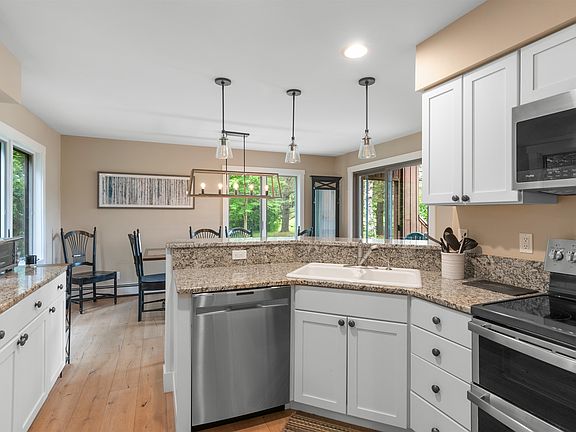 The Stonybrook condo you’ve been waiting for! Imagine the memories you will make in this private setting, with the stunning meadow, iconic red barn, and Mount Mansfield backdrop. At Stonybrook there is a network of trails to walk, tennis and pickleball to play, an exercise facility, and pools to swim in. Walk to dinner, shopping, or jump on the bike path for a ride into town. The Stonybrook location beats all! The owners of this three bedroom unit have left no stone unturned in the renovation, including building a detached, over-sized garage with loft. Enter through the newly added mudroom, into the completely updated kitchen with custom pantry, new appliances, flooring, lighting, and counters. All high-end finishes create comfortable and inviting living spaces. In the cooler months cozy up with a book, or play a game with the family in front of the fieldstone, wood burning fireplace. Along with the mudroom, kitchen, dining and living rooms, the first floor has a bar area with custom cabinets, Blanco sink and bar fridge, a bedroom, and a newly expanded bath. Upstairs you will find two bedrooms that share a newly renovated full bath. You will never tire of this awe-inspiring view while relaxing on the extended deck or in the salt water hot tub. It's called View Road for a reason! Come enjoy the seasons here. This unit is being sold mostly furnished. Seller to provide items that will not convey with the condo.