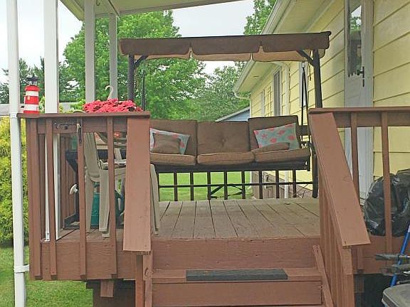 Affordable well-kept 2 bedroom, 1 full bath home in 55 and over Clearwater Village! This home offers an eat-In-kitchen, large living room with extra large windows, deck with bench swing, and private driveway. Community offers weekly events, billiard room, clubhouse, 4 gazebos, horseshoes, olympic-sized salt water/heated swimming pool and shuffleboard. Maintenance fee includes ammenities, common area maintenance, land lease, garbage removal. No property taxes!!