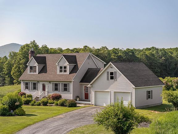 This attractive Waterbury Center Cape with attached 2-car garage and lush, level lawns offers over 2700 square feet of living space on 5+ private acres with mountain range views. Lovingly improved and maintained under the same ownership for over 25 years, this inviting 1992 home features a new roof (2024), Nest thermostats on all floors, and generous recreational and storage space in the finished basement. The updated kitchen anchors an open floor plan for an effortless flow of family and guests between the living room, dining area, and back deck (with retractable awning). Kitchen highlights include eye-catching granite countertops, abundant cabinet space, and newer stainless-steel appliances including an all-gas Electrolux range. The main level also features hardwood flooring, cozy TV den, full bath, and heated mudroom. The bedroom level offers a larger full bath with double-sink vanity and a roomy primary bedroom with bonus space for a desk or sitting area, plus a walk-in closet (8 x 7). You’ll love this home for all its functionality, desirable neighborhood, quick proximity to the ski slopes of Stowe, and easy commute to Montpelier or Burlington. A successful winter rental over the past few years, furnishings and equipment are offered optionally.
