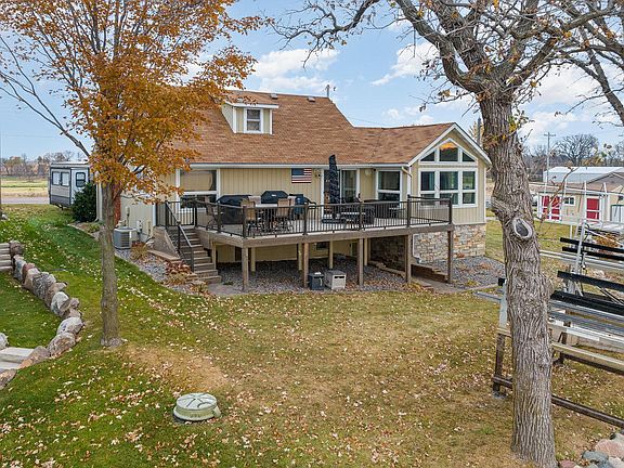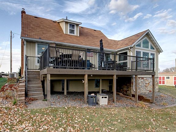 Stellar views from this lakefront year-round home that is loaded with updates! Main level lake living, updated kitchen, newer appliances, luxury vinyl plank flooring on main and lower level. NEW vaulted living room addition offers spectacular southern lake views with an open floor plan. The upper 1/2 story currently used as large bedroom but fantastic flex area! Dining area opens up to a generous deck large enough for friends and family! Main floor laundry in addition to basement laundry area. Lower level offers a cozy family room, 4th bedroom, walkout basement with extra kitchenette for potential rental.