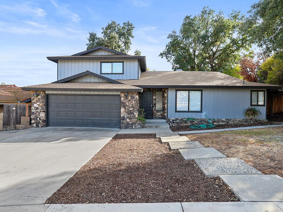 Captivating curb appeal, character, and sparkling pool! Don't miss this 4 bedroom/ 3 bathroom home in Porterville! The spacious and practical floor plan includes a great room, kitchen, dining, and owner's suite on the main floor and remaining bedrooms upstairs. The owner's suite features attached bathroom and sliding door access to the backyard. Upgraded flooring and countertops throughout the home add modern touches without sacrificing character. A grand rock fireplace is the centerpiece of the great room. Outside, a gorgeous pool is surrounded by a blank slate, ready for your dream landscaping.