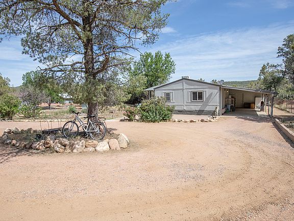 Don't miss this unique opportunity to own a horse property that backs directly to the National Forest and is just a short walk from the historic Round Valley Indian Ruins. This charming 2-bedroom, 2-bath home includes a private well, full fencing, and a handicap-accessible lift. Enjoy the forest views from the spacious, covered front porch.