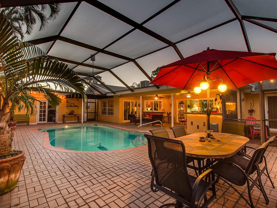 Welcome home... This lovely 3 bedroom, 2 full bathroom ranch pool home features a great design perfect for Florida living! Entering through the beautiful hardwood front door brings you into the 10ft x 5ft foyer, open family room and custom designed spacious kitchen with stainless steel appliances and cabinetry galore, formal dining and every room overlooks the pool, excluding bedroom 2 and 3. This home has been very well maintained and pride of ownership can be found throughout, such as; tile and real hardwood floors throughout, 2004 roof, newly painted, updating and renovations throughout, lush landscaping and custom lighting indoor and outdoor. In addition, there are newer tinted hurricane windows and doors throughout, with the exception of a few windows. Hello... energy efficient and