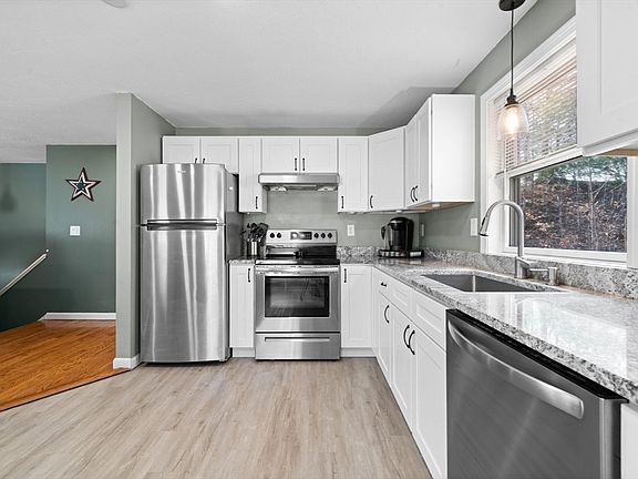 Discover this exceptional home in Athol, Massachusetts, featuring an inviting open-concept layout that connects the living room and kitchen. The beautiful kitchen includes white shaker cabinets, granite countertops, and stainless steel appliances, ideal for cooking and entertaining. The spacious living room, with refinished hardwood floors, is filled with natural light. On the first floor, you'll find a stylish bathroom with a double sink vanity and custom tile shower, along with two bedrooms offering hardwood flooring and ample closet space. The finished walkout basement showcases laminate flooring throughout and includes a full bathroom with an updated vanity and custom tile shower. A bright third bedroom and an expansive family room provide additional space for gatherings. Recessed lighting enhances the home, while the private backyard features a deck and cozy fire pit, perfect for outdoor enjoyment. Join us for an open house on Thursday, April 17, from 5 PM to 7 PM.