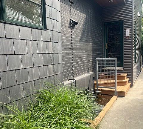 Exposed brickPorcelain tileRadiant floorsDuctless ac unitEnsuite laundryStainless steel appliancesLarge exterior storage locker