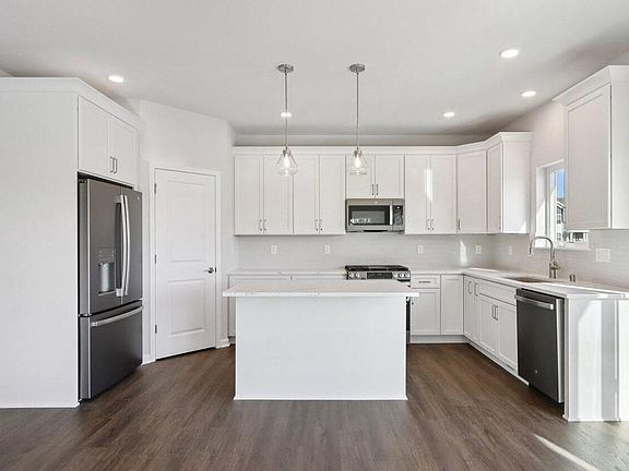 Welcome to the Weston! This open-concept home features a kitchen w/ 42'' painted cabinets, crown molding, soft-close doors/drawers, quartz countertops, tile backsplash, & island w/ snack bar. GE(r) slate appliance w/ French door fridge & slide-in gas range. Corner walk-in pantry w/ melamine shelving. Great room boasts a gas fireplace w/ stacked stone surround & box mantel w/ side returns. Luxury vinyl plank flooring flows through the kitchen, nook, great room, foyer, laundry, & halls. Master bath w/ dbl bowl vanity, large WIC, & a tiled walk-in shower w/ swing glass door & full-length tile shelf. Laundry room w/ utility sink, folding counter, & built-in boot bench w/ beadboard. Azek(r) deck, finished basement staircase, lookout exposure w/ added windows, bath rough-in. Builder warranty incl.