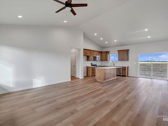 Welcome to this beautifully crafted 3-bedroom, 2-bath home in the sought-after Stoney Ridge neighborhood of Jerome. An open floor plan with vaulted ceilings creates a light-filled gathering space where the kitchen, dining, and living areas flow seamlessly together. The kitchen is finished with custom cabinetry and durable stone countertops, offering both style and function. A split-bedroom design ensures privacy, with the primary suite tucked away from the secondary bedrooms. Step outside to enjoy stunning views of the northern mountains, or appreciate the convenience of a south-facing driveway that helps with winter snow melt. This home offers a balance of comfort, design, and practicality in a location you’ll love.