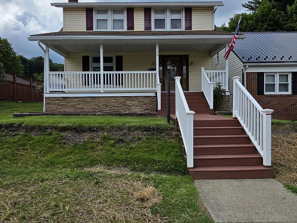Charming and well-maintained, this 3-bedroom, 1-bath home offers classic curb appeal with a large covered front porch, updated railings, and a welcoming entry. Inside, you'll find a spacious kitchen with ample cabinetry, modern backsplash, and a cozy dining area that opens to a bright living space. The bedrooms are freshly painted with neutral tones and plush carpeting, providing comfortable retreats.
