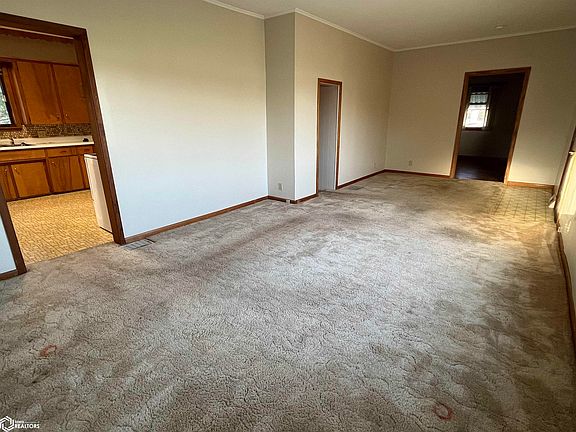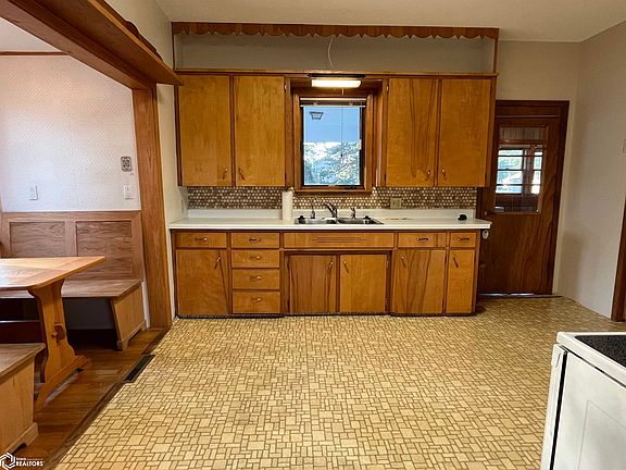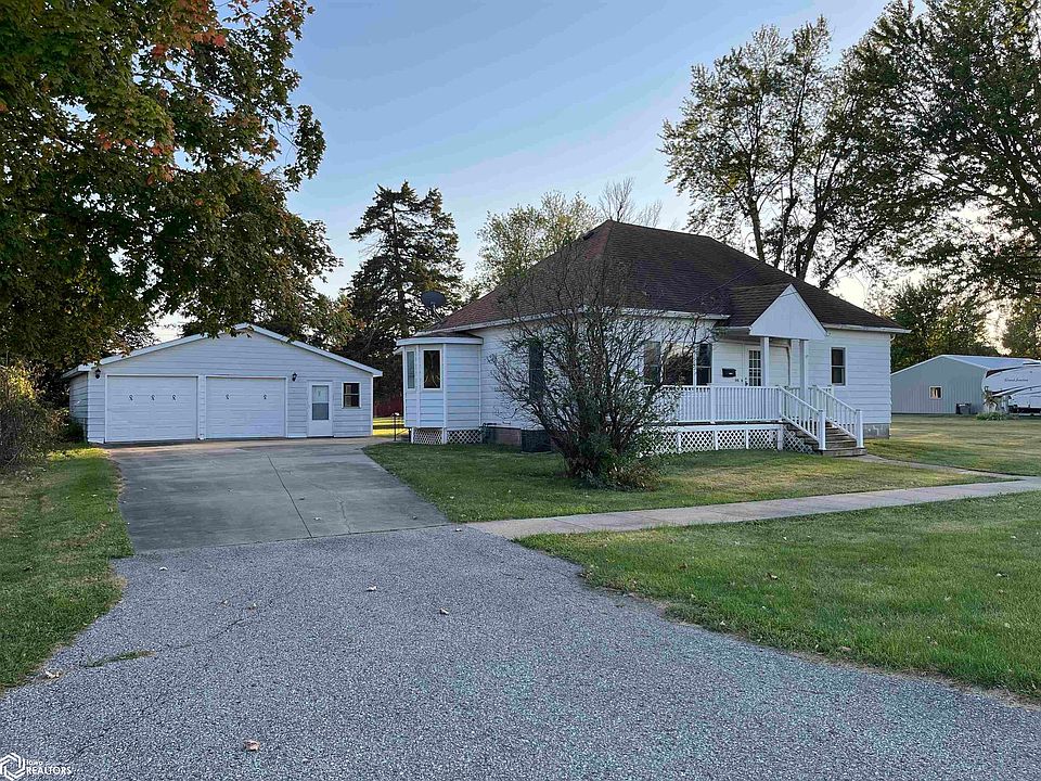 Owned by the same family since 1955, this cozy 2 bedroom, 1 bathroom home has been lovingly maintained and offers tons of options for the next homeowner. The functional kitchen has ample space and features a wall of cabinets and counters and a cozy nook with booth seating surrounded by large windows, creating a bright and inviting atmosphere. The living room offers more great space and provides access to the first bedroom with a lengthy jack and jill closet leading to the second bedroom. From the living room, you can also access a hallway with floor to ceiling shelving, and the remodeled ¾ bathroom, complete with a modern shower, vanity, toilet, and flooring—updated just two years ago. Off the kitchen is a bonus room that could be an office, gym, or whatever suits your lifestyle. The enclosed back porch / mud room has a handy laundry area and offers space for coats, shoes, and storage. The partial basement provides even more room for storage. Step outside and enjoy the nice, paved driveway leading to a 31’x26’ detached garage with a bonus work / play area. The inviting front porch and oversized yard offers tons of room for outdoor activities and relaxation. Call soon for your tour of this well-maintained Albia home for sale.
