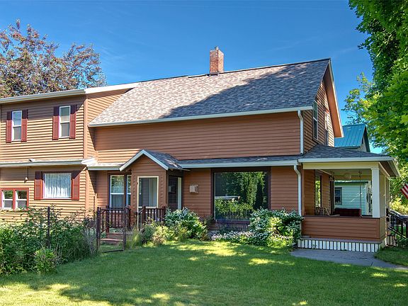 A beloved circa 1910 home in the heart of Kalispell's desirable Eastside neighborhood. Set on a picturesque, tree-lined boulevard, this residence offers 1,986 sq. ft. of living space w/ 3 bed/2 bath & a relaxing front porch with a swing and a custom fir & larch front door. Giant picture windows in the living rooms & kitchen offer peaceful views of the changing seasons. This house has been diligently maintained, with new roof & exterior paint, fresh paint in kitchen & upstairs, and new kitchen flooring. Historic features include painted wood trim & built-in bookshelves, and a clawfoot tub & antique vanity in the downstairs bath. Upstairs primary suite features a tiled shower & every bedroom offers ample closet space. The lush backyard boasts lilac, apple, sand cherry trees & productive raspberry patch. A screened-in summer porch off the 1-car garage can store up to 17' boat in winter, w/removable side wall. Lots more storage in basement. Listed by Amelia Sears.