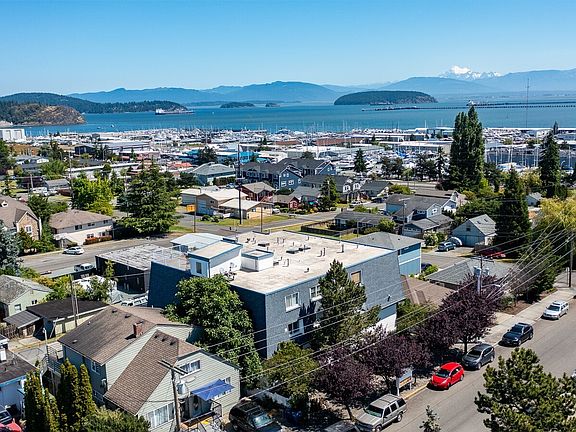 Top-floor charm with sweeping views! This delightful 2-bedroom, 1.75-bath condo offers picture-perfect vistas of Mt. Baker, Fidalgo Bay & downtown. Located in a prime corner position, this top-level bungalow is filled with natural light & perfectly situated close to town, beaches, Tommy Thompson Trail & convenient hwy access. The living is easy with one-level design, in-unit laundry, secure entry, elevator to all floors, both street & covered garage parking. Enjoy private deck off the primary bedroom, plus a rooftop terrace ideal for morning coffee or watching sailboat races glide across the bay. Additional perks include community rec room & private storage. Comfortable, connected & full of charm—this is Anacortes condo living at its best.