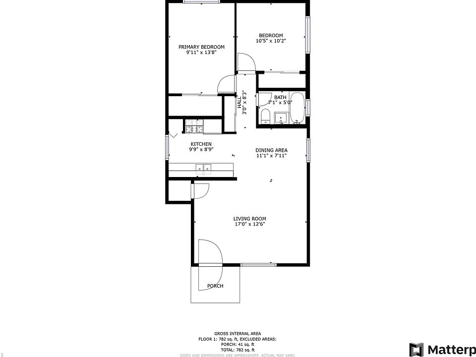 - Total interior livable area: 836 sqft