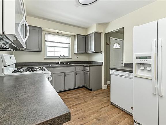 Welcome to this beautiful, move in ready home in the heart of Baden. You will be blown away by the updates starting with new laminate flooring which runs throughout the entire main floor. The kitchen has plenty of soft close cabinets and lots of counterspace to prep dinner. The entire main floor has been freshly painted in modern gray tones. The living room is accented by a beautiful wood fireplace and lots of numerous windows providing so much natural light. There are 3 generous size bedrooms and an updated full bath with a tile shower and ceramic tile flooring. The living space spills out onto the patio where you'll find a built in bar and seating on the patio. Brick paver patio extends into the back yard and leads to the shed. Two levels of flat fenced yard allow for many activities with dogs or children. There is a huge, dry, clean 29x26 basement and a long one stall garage. This home is conveniently located to all things Beaver County and in close proximity to Cranberry.