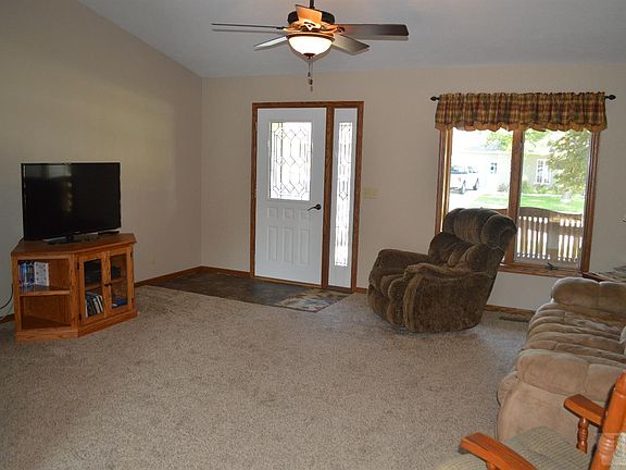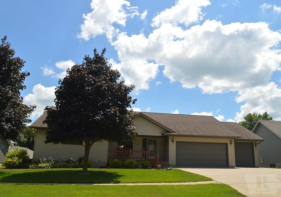 This ranch home has approximately 2446 square feet of living space. 1452 sq. ft on the main floor which hosts a living room, large kitchen with bar, a dining area with a walk-out door to deck, 2 bedrooms, 2 baths, and a laundry room. The basement hosts 2 more bedrooms, 3/4 bath, a rec room (currently used as a quilting area) and storage rooms. Some new updates include:2015 flooring on most of main floor, 2017 black stainless steel appliances, ceiling fans, etc. With a steel shingles, steel siding, and a sprinkler system, you shouldn't have much maintenance to do on the home or in the yard. The backyard has some privacy with its evergreen trees and it's located on a quiet street. The triple garage is insulated and finished and gives you plenty of room for storage and a work area.