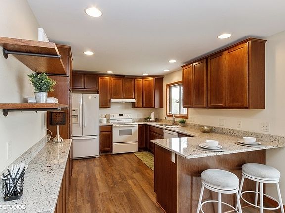 Almost everything in your new home has been carefully updated with quality craftsmanship. Remodeled kitchen include cabinets w/soft close dovetail drawers, granite countertop, stylish open shelving and Bosch dishwasher. Other new improvements include LVP flooring in kitchen, dining and entry, carpet in all bedrooms & lower level, windows, siding and shed. A tiled shower with stone floor, new vanity and sink round out the beautiful master bath. The lower level boasts a large laundry room, FR and n/c bedroom.