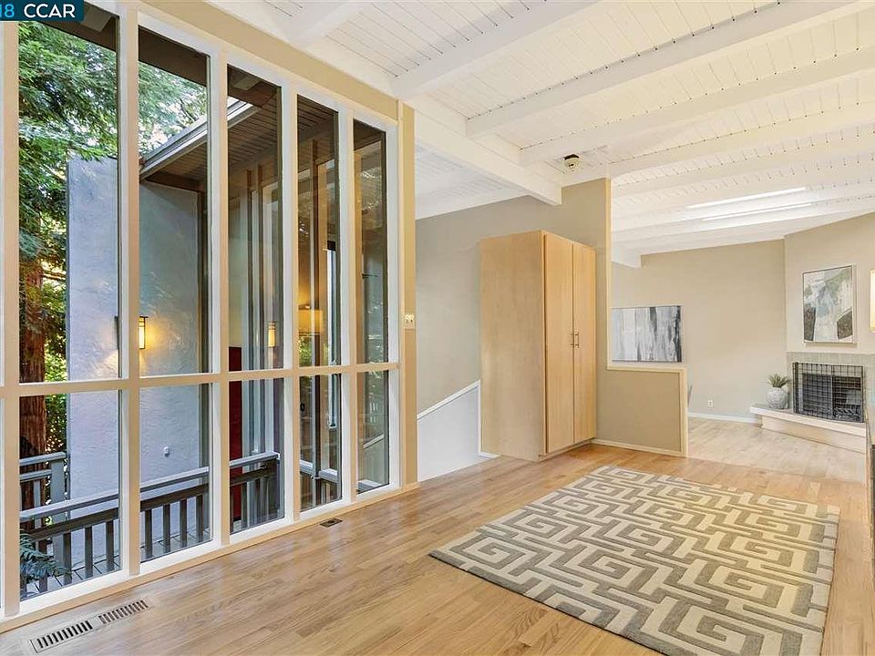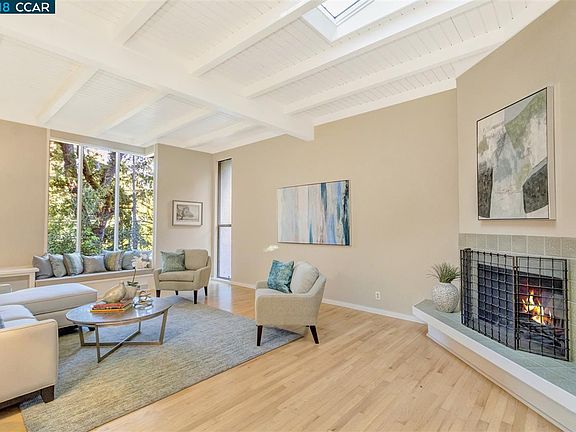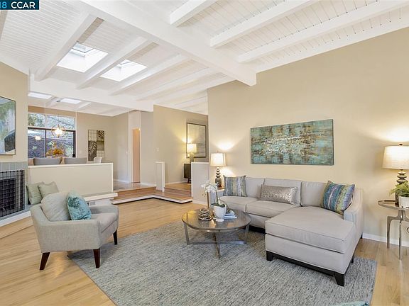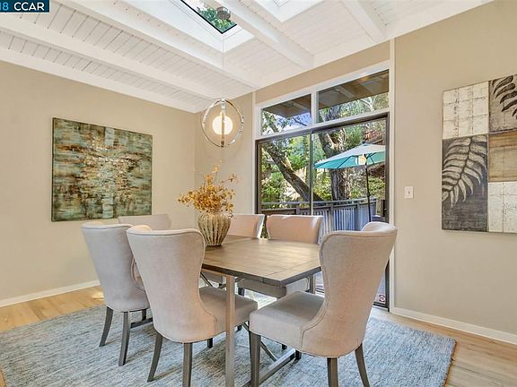 Stunning masterpiece created by EG Craig that blends high ceilings, hardwood floors, Terracotta tiles, skylights and amazing sun drenched rooms. Walls of windows bring the ambiance of Oaks and Redwoods into view to complement the updated kitchen, baths and white wood accents. Large foyer opens to the high volume ceilings in the living room with window seat, hardwood floors, wood burning fireplace and skylights. Next to the updated chef's kitchen is the formal dining room with sliding door to the deck, skylights and hardwood floors. The kitchen features light wood cabinetry, stainless steel appliances, quartz counter tops, pantry and wet bar. Master suite will tall windows, high ceilings, walk-in closet, granite vanity and tile shower. Adjacent to the family room are 3 additional bedrooms, the hall bath with double sinks and separate area for the tub/shower. Enjoy the changing of seasons from the deck and landscaped backyard. Off the deck is the spa and stairs to a side yard.