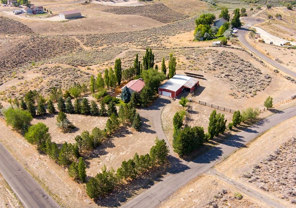 - Exterior Features: Trees, Work Shop, Deck(s) Uncovered, Corner Lot, Fenced- Full, Lawn, View of Mountains, Corrals/Stalls, Landscaping: Rock, Landscaping: Partial, Landscaping: Natural, Horses Allowed