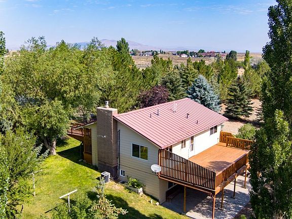 This 1584 sq/ft home on 5.49 acre corner lot is a rare find. This immaculate 3 bedroom 2 bathroom home has a cozy cabin feeling as soon as you pull through the gate and into the driveway. You are greeted by large trees, including fruit trees, berries, etc. The home has a metal roof, central air, and a gorgeous back deck facing the mountains. The interior the home boasts a beautiful log cabin feel, and the basement walls are lined with gorgeous red cedar. The basement is completely finished and features a large great room or family room, a large bedroom, bathroom and a walk-out basement with a patio. The biggest bonus is the 30x70 shop. The back portion of the shop is a 30x40 and the front portion is a 30x30 with two large doors with a big lean-to for extra storage. This home also features a self-reliant solar system. The view is absolutely gorgeous. There are just too many upgrades to mention, you have to see it to appreciate everything is has to offer.