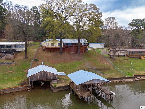 Come view this spectacular view of Lake Claiborne! This 4 bedroom 3 bath home, remodeled in 2016, is on hill overlooking the lake with beautiful sunsets with three covered porches. There is a two slip boathouse, pier seawall and storage building by the view. Come view this home on the lake with great amenities!
