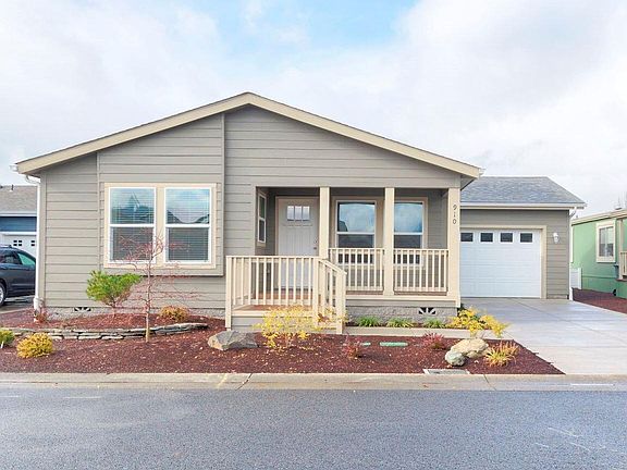 This home is a 1512 sf brand new manufactured home with 2 bedrooms, 2 baths plus an office and was built in 2023. Located in Westlake Village, the premier 55+ manufactured home park in the Grants Pass area located close to downtown, a large city park and the Rogue River. The home has vaulted ceilings. and comes with: Range, Microwave, Refrigerator, Dishwasher, a Large Pantry, a Farm sink and Laminate counter tops in the Kitchen. Also, easily maintained landscaping, a covered patio in the fenced back yard and a comfortable, covered front porch for relaxing on. There also is a large, single car garage with automatic garage door opener. Park features include security gates, professional on-site management. a large lake, and a clubhouse with a great room, event space, library with reading room, and a state-of-the-art exercise room, all available for residents and their guests at no charge. Monthly rent will be $775. One year factory home warranty included,