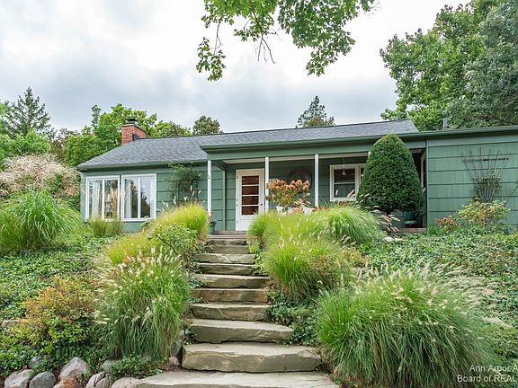 Charming classic ranch home in move-in condition. Large light filled living room with hardwood floors, lovely views and custom wood burning fireplace. Updated kitchen with solid maple cabinets, S/S appliances, granite counters and a generous eating area. Master bedroom suite with full bath and large study opening onto very private deck and pergola. Second bedroom with hall bath. House surrounded by natural landscaping and mature perennials. Full basement with 1/2 bath. A rare one story home in popular Ann Arbor Hills area; walking distance to Nichols Arboretum, UM main campus and downtown Ann Arbor.