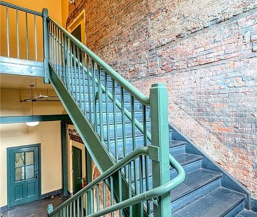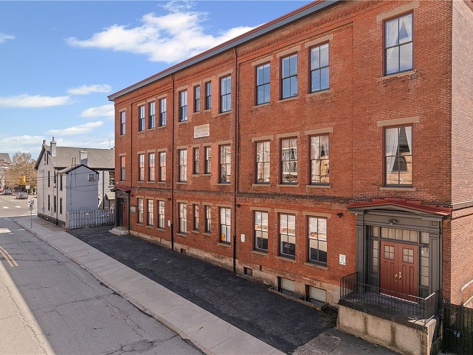 Historic charm and modern loft living come together in this character-filled 2-bedroom condo at South Side’s Bedford School Lofts. This unique residence features soaring 15-foot ceilings, original hardwood floors, exposed brick, and 8-foot windows that flood the space with natural light and offer stunning views of the city skyline. The spacious layout includes a private bedroom with double closets and a versatile lofted second bedroom or flex space—perfect for guests, a home office, or creative studio. Original school chalkboard walls add a one-of-a-kind touch. The fully renovated bathroom includes a stackable washer and dryer for added convenience. Enjoy gated owner parking with one assigned space, plenty of guest parking in the front lot, and a private, assigned storage unit. Condo fee includes building and exterior maintenance, water, sewage, and trash removal. Pet-friendly community in a prime South Side location—just minutes from shopping, dining, and downtown Pittsburgh.