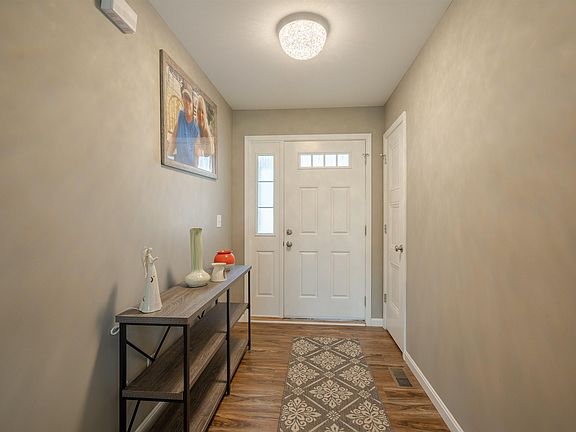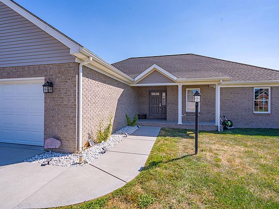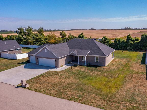 This "like new" ranch home in Ft Branch features a welcoming spacious living room, complete with a ceiling fan and large windows that flood the space with natural light, making it an inviting area for relaxation and entertainment. The eat-in kitchen, which offers a seamless view of the living room, is equipped with modern stainless steel appliances, a kitchen island with bar seating for casual dining, and a convenient walk-in pantry for ample storage. Additionally, the kitchen includes space for a cozy breakfast nook, perfect for enjoying morning meals in a bright, inviting setting. Conveniently located just off the living room, the half bath provides easy access for guests and adds to the home's functionality. The expansive owner suite features a luxurious en suite bathroom equipped with a twin sink vanity, a spacious walk-in shower, and an ample walk-in closet, enhancing both comfort and convenience. The remaining bedrooms are situated on the opposite side of the home, providing privacy, and they share a well-appointed hall bath for added convenience. The private backyard features a beautifully designed covered patio area, perfect for outdoor relaxation and entertaining, offering a serene space to enjoy the outdoors year-round.